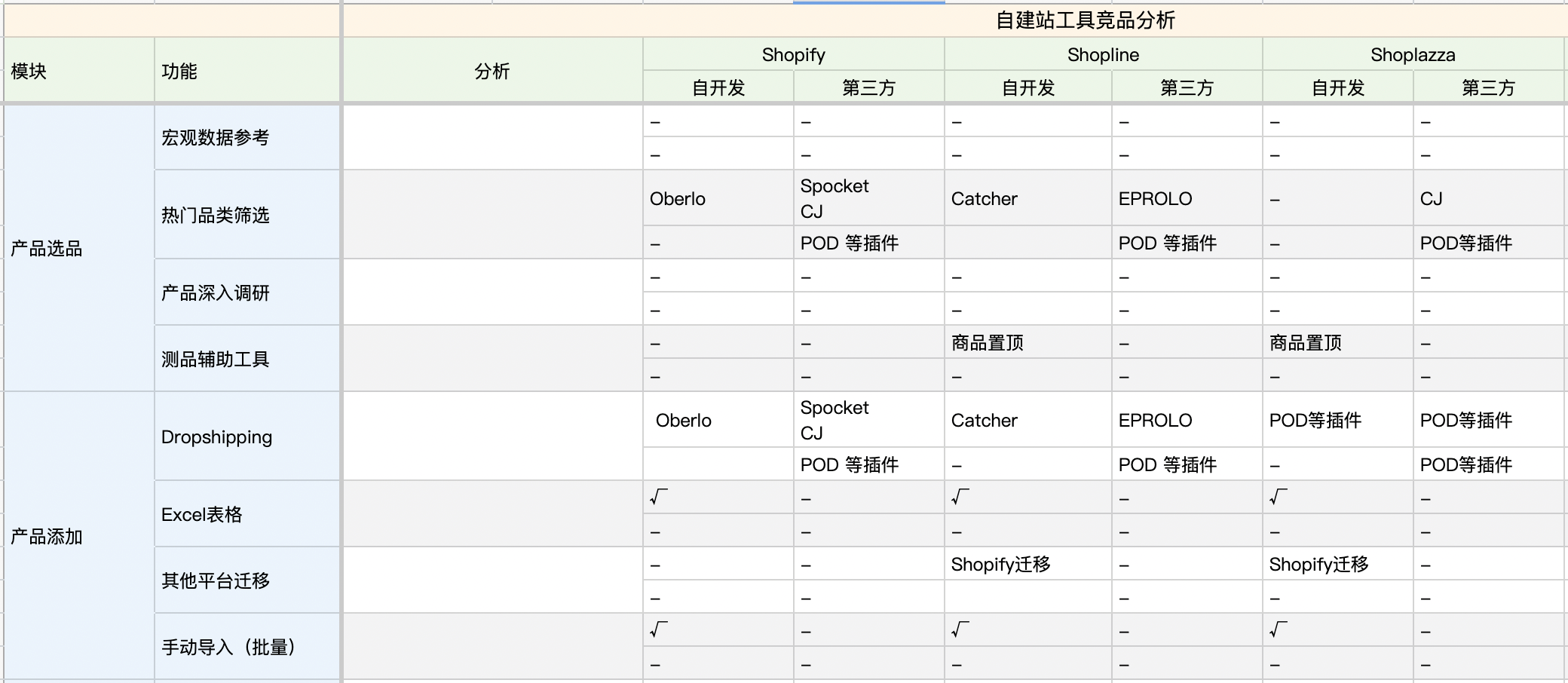 深入调研产品需多个工具的辅助,如SEMrush、Ahrefs、Adspy等,才能对该产品的市场情况、竞争难度、发展前景有深入的了解,因此建站平台无法提供此类型的工具很正常。