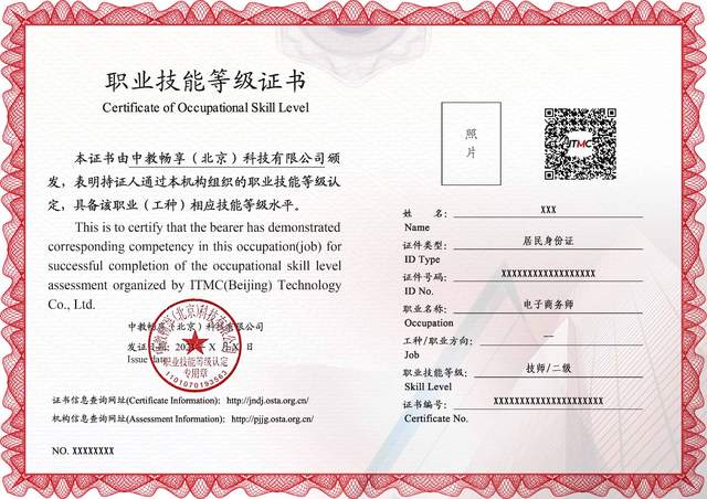 中教畅享(北京)科技有限公司经自主申报、专家遴选、信用核查、注册地人力资源和社会保障部门实地考核及征求社会各方面意见等程序,成功入选首批职业技能等级认定第三方评价机构名单,面向“电子商务师”职业(工种)开展评价试点工作。
