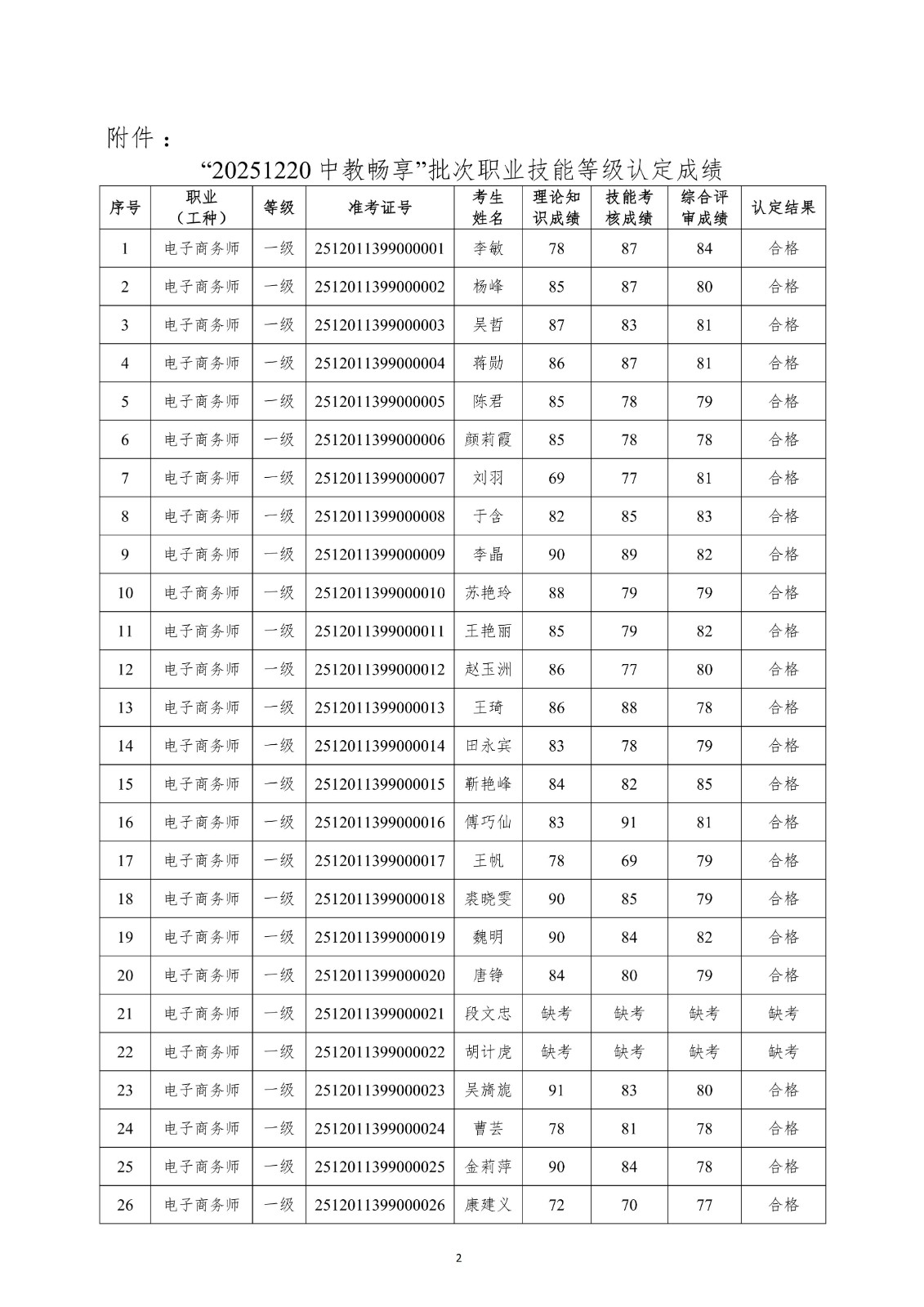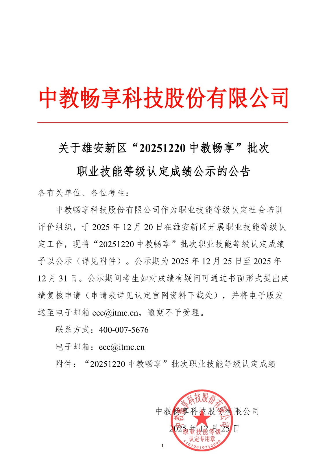 关于雄安新区“20251220中教畅享”批次职业技能等级认定成绩公示的公告
