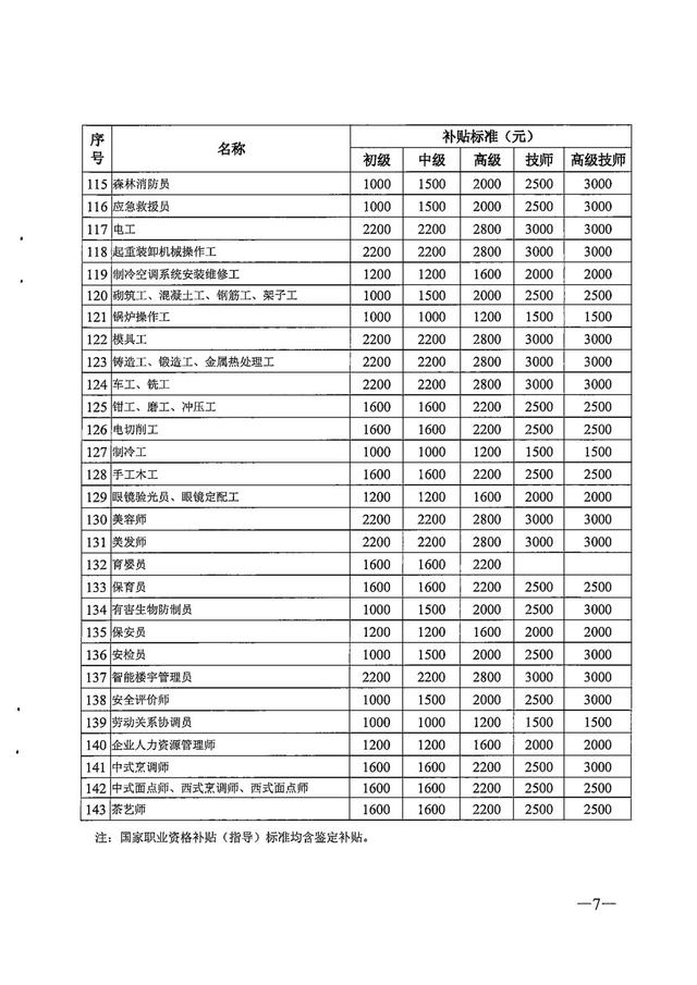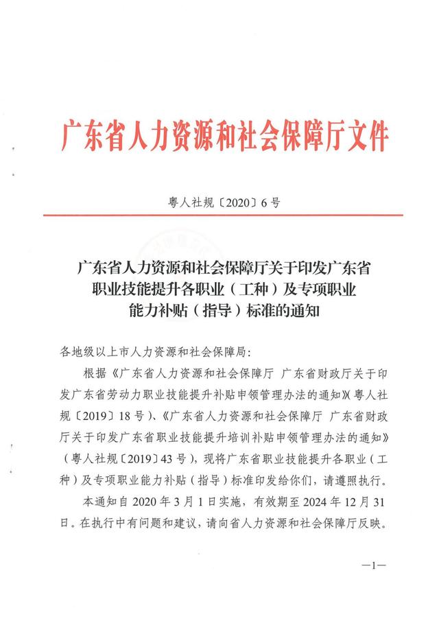 根据《广东省人力资源和社会保障厅广东省财政厅关于印发广东省劳动力职业技能提升补贴申领管理办法的通知》粤人社规〔2019]18号)、《广东省人力资源和社会保障厅广东省财政厅关于印发广东省职业技能提升培训补贴申领管理办法的通知》(粤人社规〔2019]43号 ),现将广东省职业技能提升各职业(工种)及专项职业能力补贴(指导)标准印发给你们,请遵照执行。